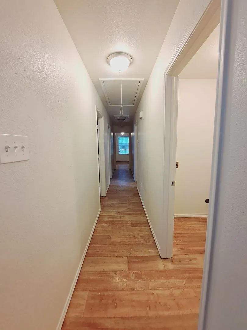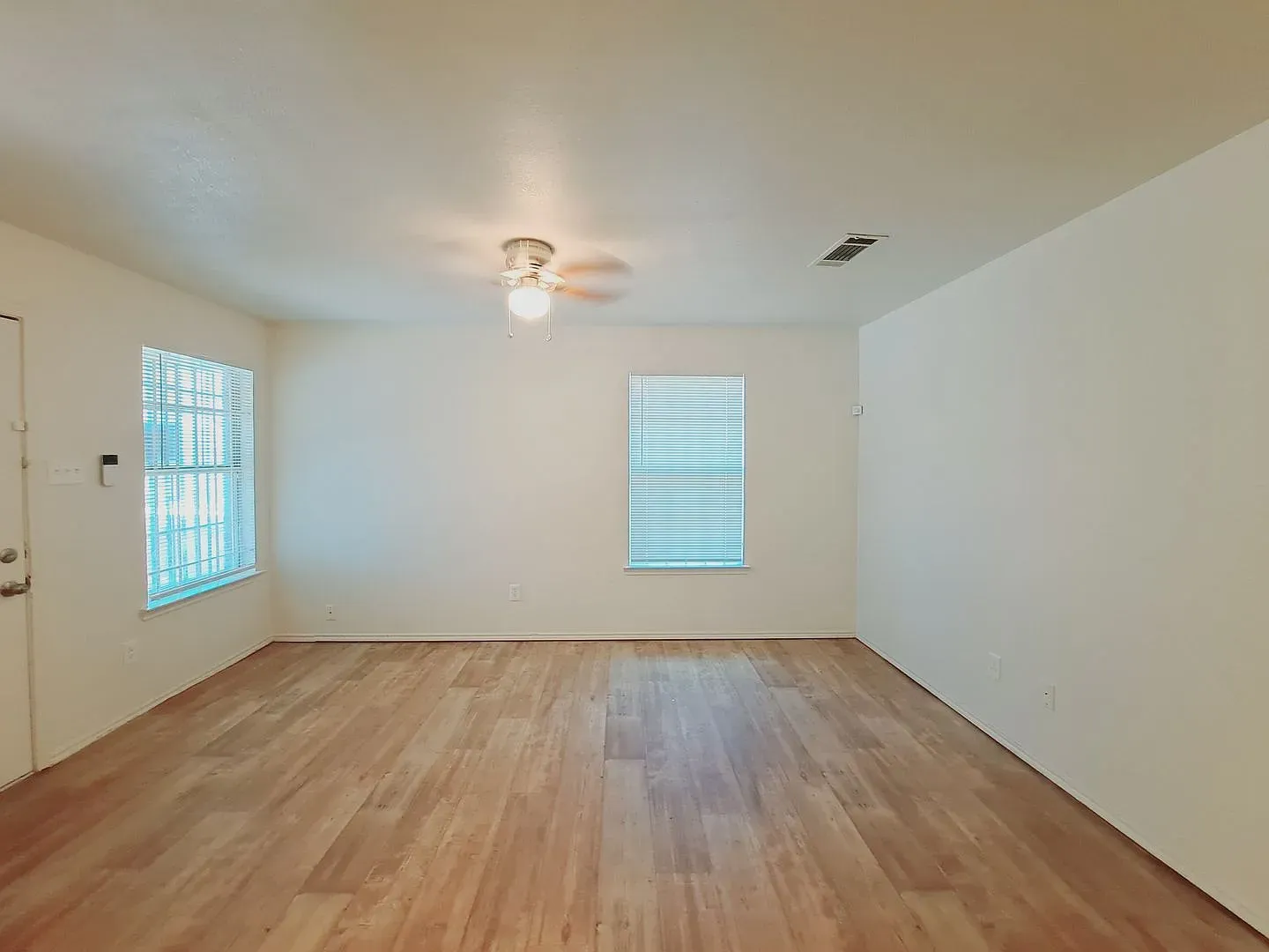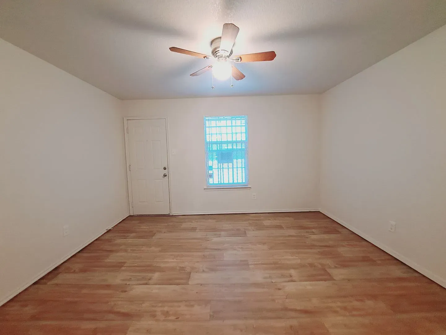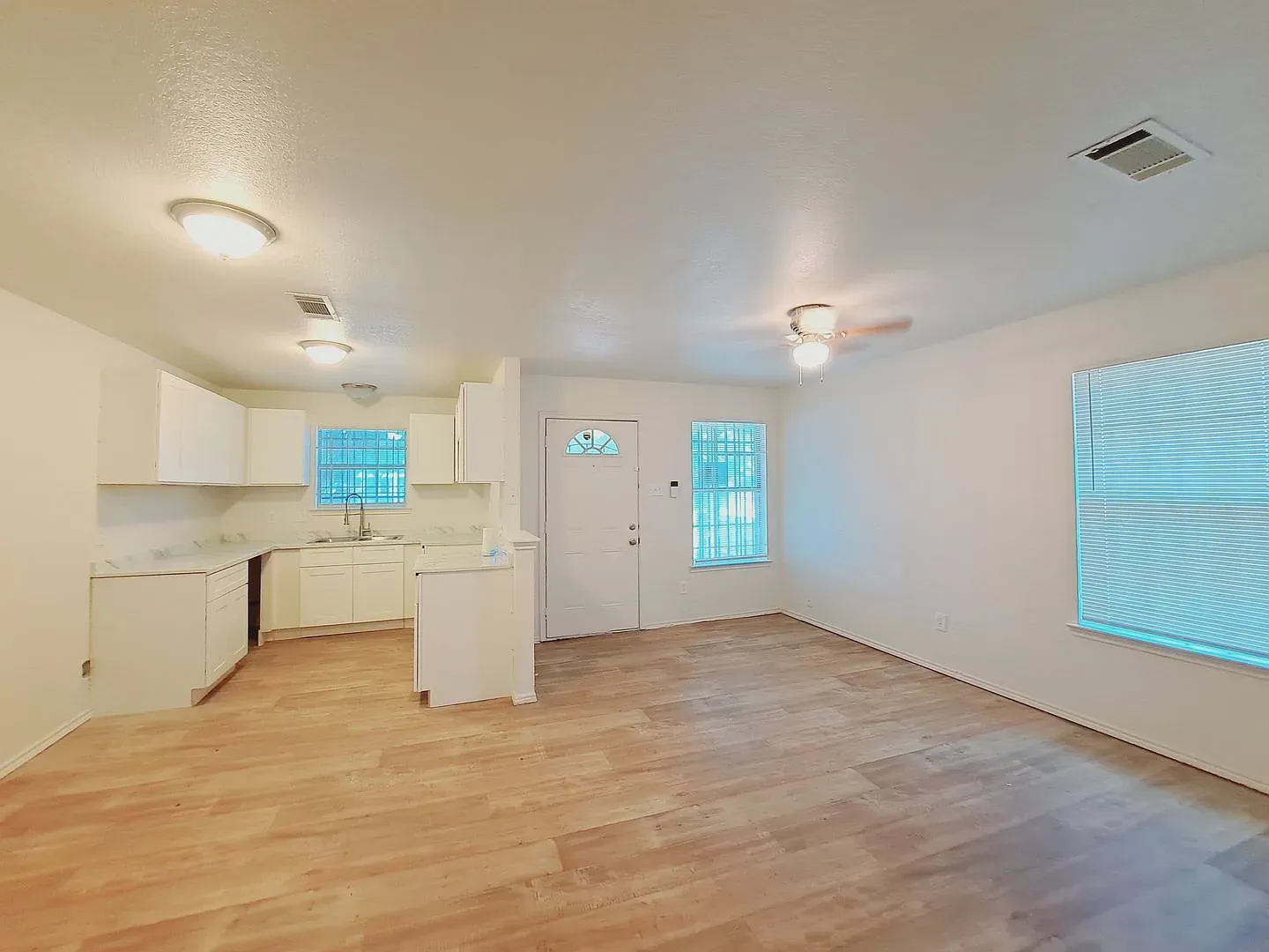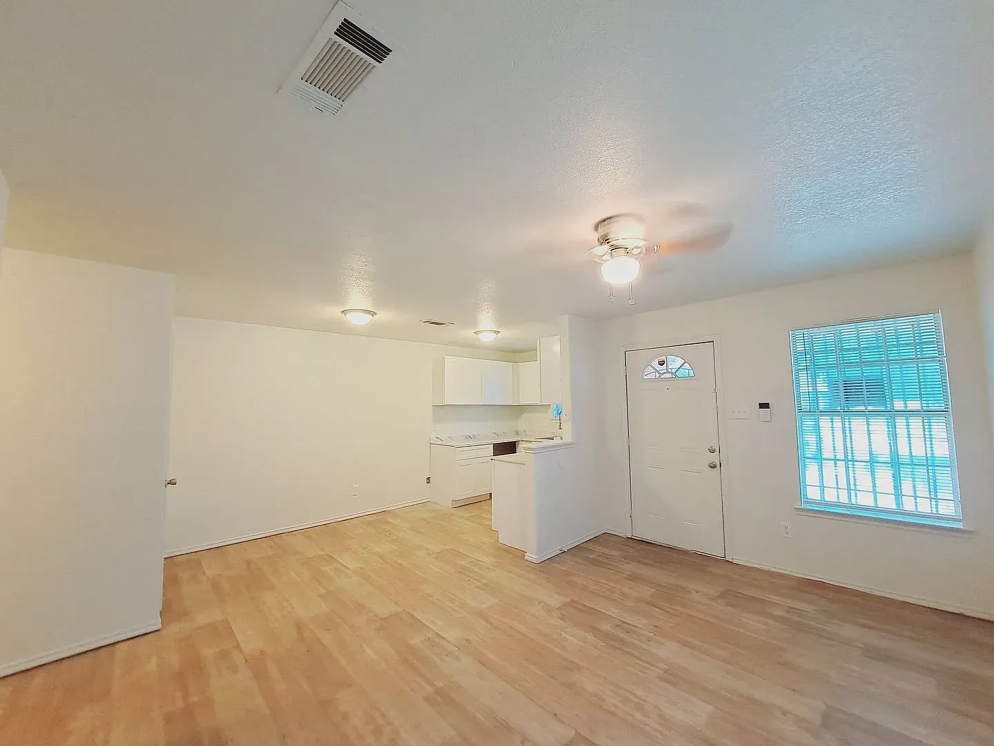 Step into comfort and convenience with this beautifully updated two-bedroom, one-bath duplex. Fresh paint and modern vinyl plank flooring give the space a bright, refreshed feel. The open kitchen features updated countertops, perfect for cooking and entertaining. You’ll also enjoy an upgraded bathroom, central heat and air, and ceiling fans in every room to keep things comfortable year-round.