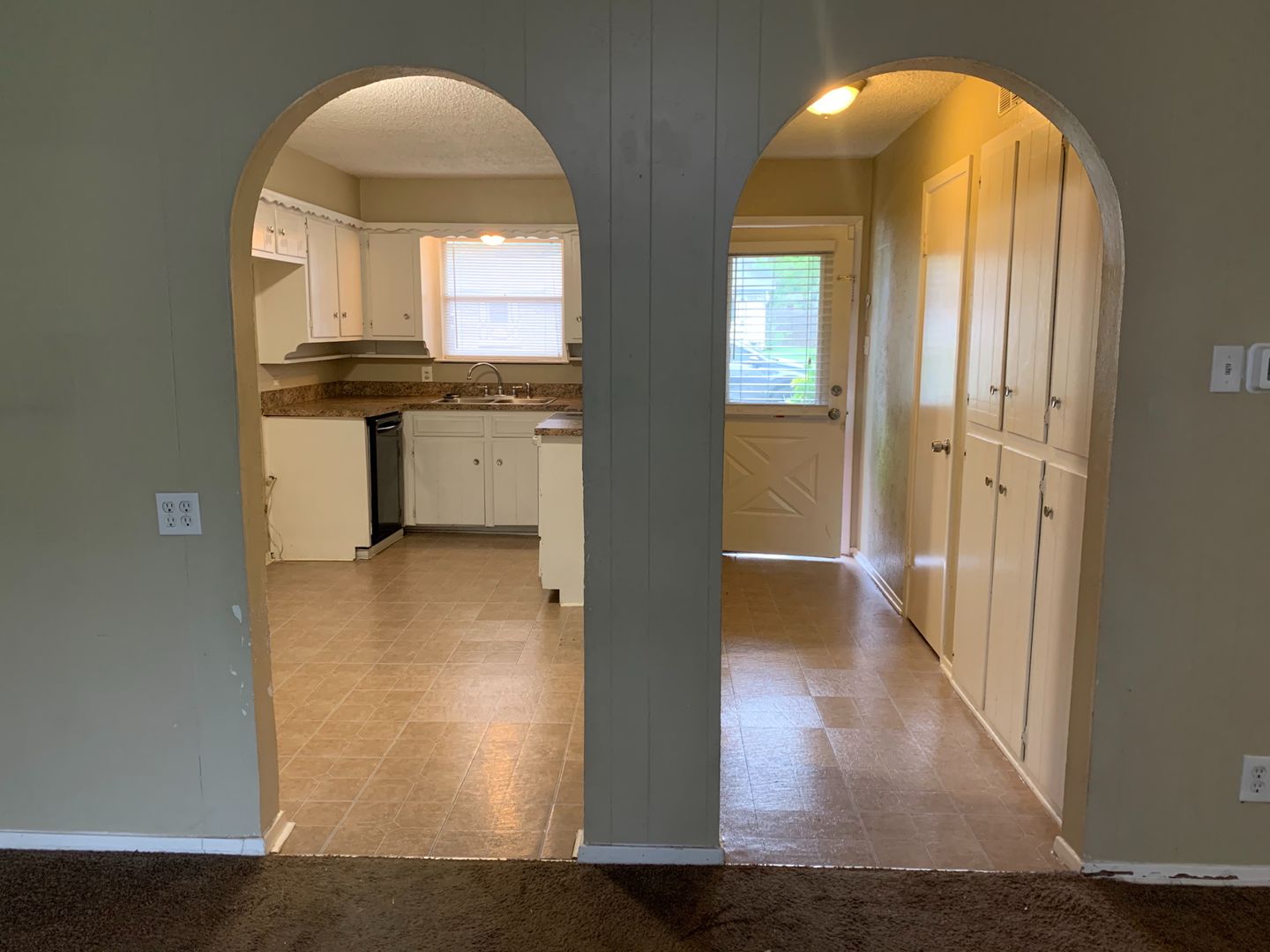 The kitchen features an electric range, vent hood, and dishwasher, with easy access to the dining and living areas—ideal for everyday living.
