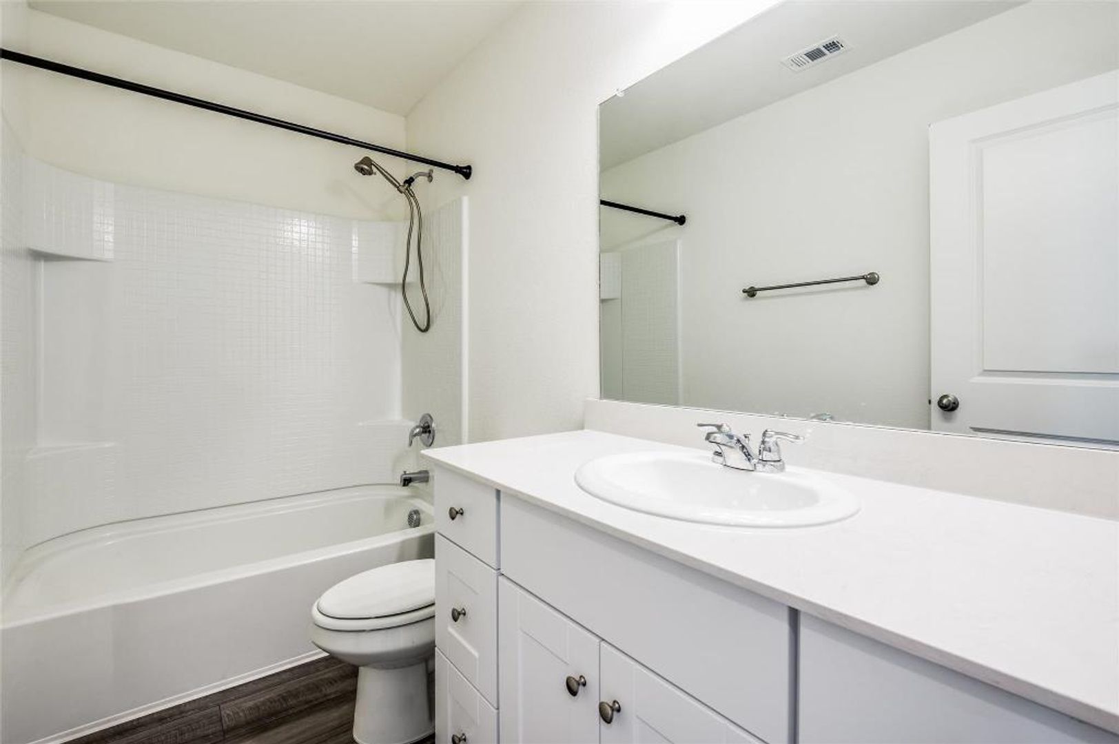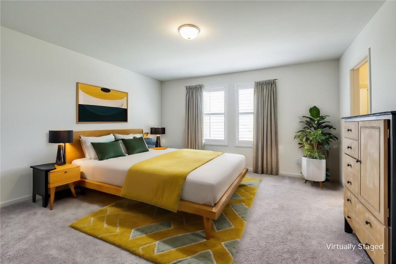 Enjoy stylish laminate flooring, spacious rooms, and an open-concept layout that seamlessly connects the living, dining, and kitchen areas. The bright living room features custom shutters and flows into the kitchen, complete with freshly painted cabinets, granite countertops, a large center island, pantry, and stainless steel appliances—including a side-by-side refrigerator.