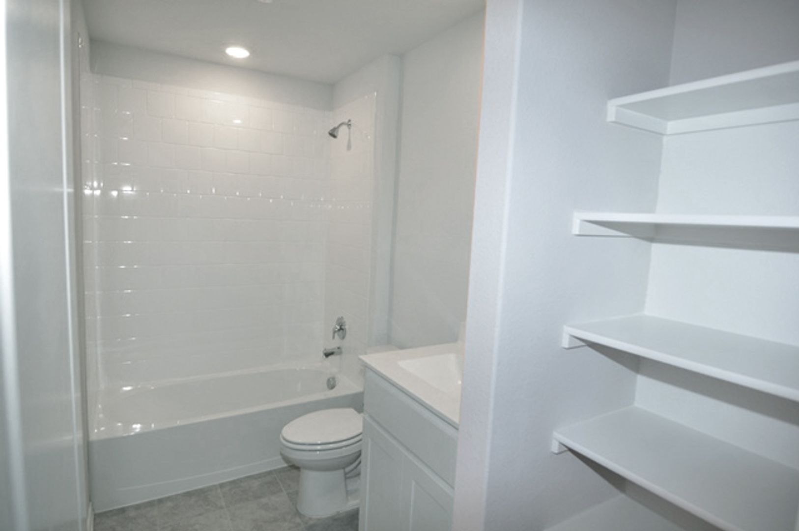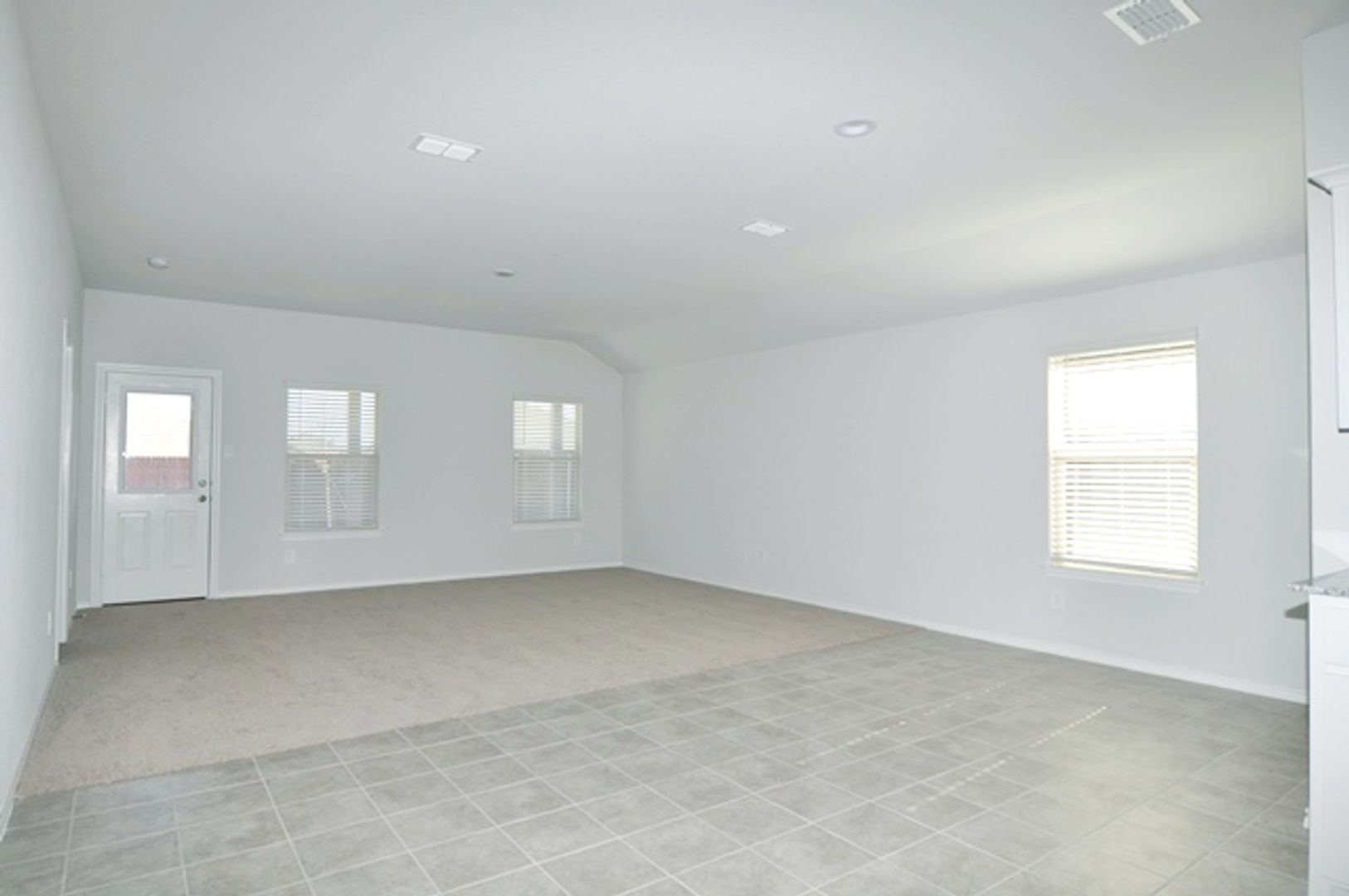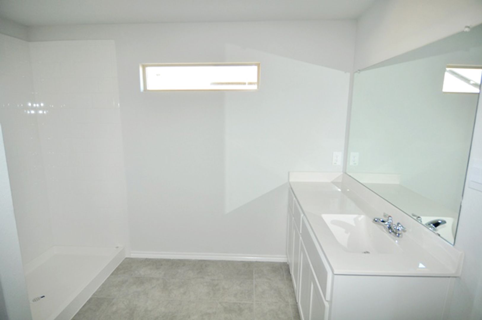 The chef’s kitchen showcases crisp white cabinetry, a generously sized center island, a built-in microwave, and ample pantry space. The primary suite offers a large 10x7 walk-in closet, extended vanity, separate shower, and additional storage. Secondary bedrooms are well-proportioned, and the second bathroom includes extra storage. A large utility room and expansive backyard complete the home.