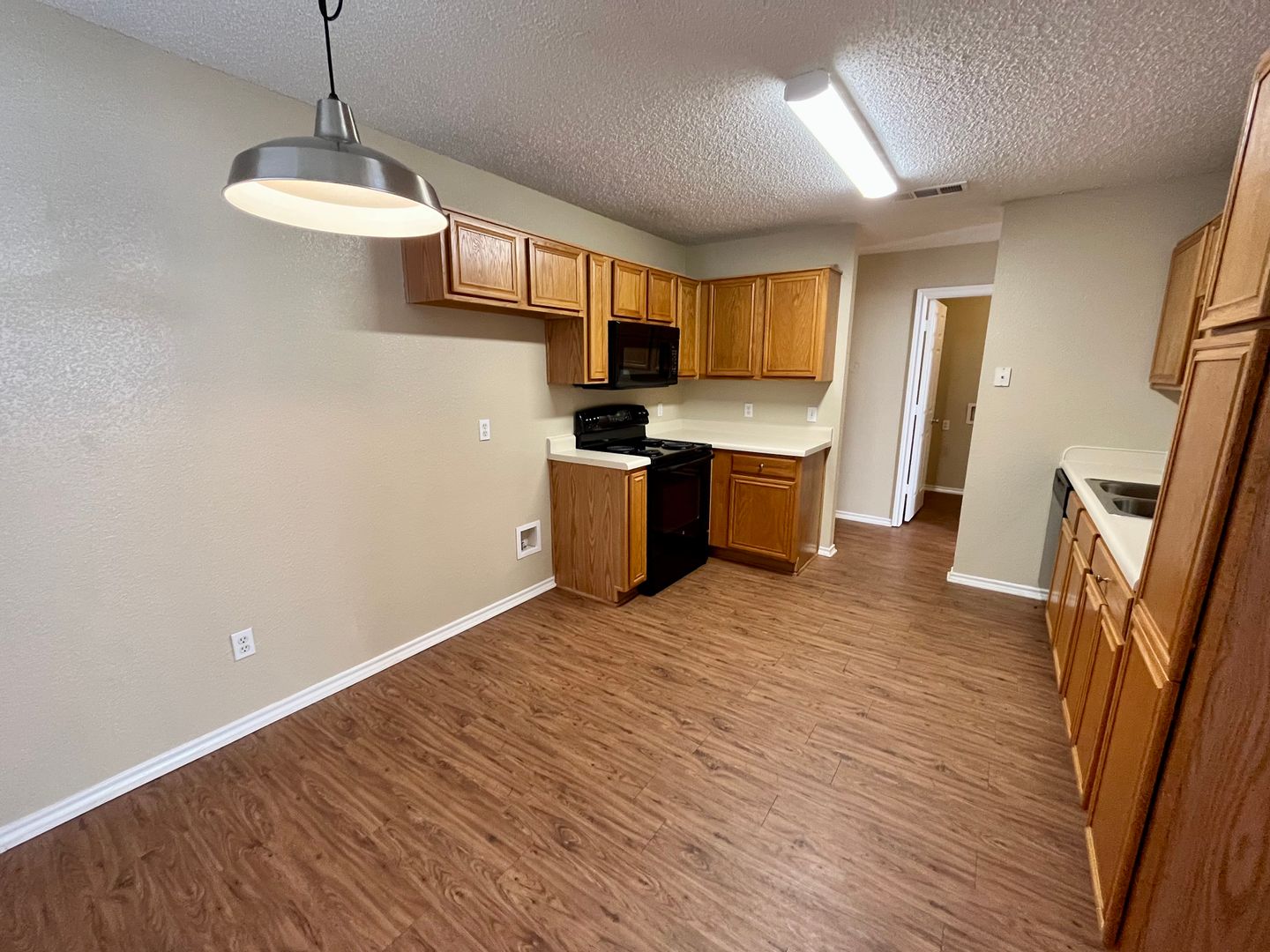 There’s a 2-car garage with an automatic opener, and hookups are ready for your washer, dryer, and fridge. Tenant covers electric and water through the City of Fort Worth.