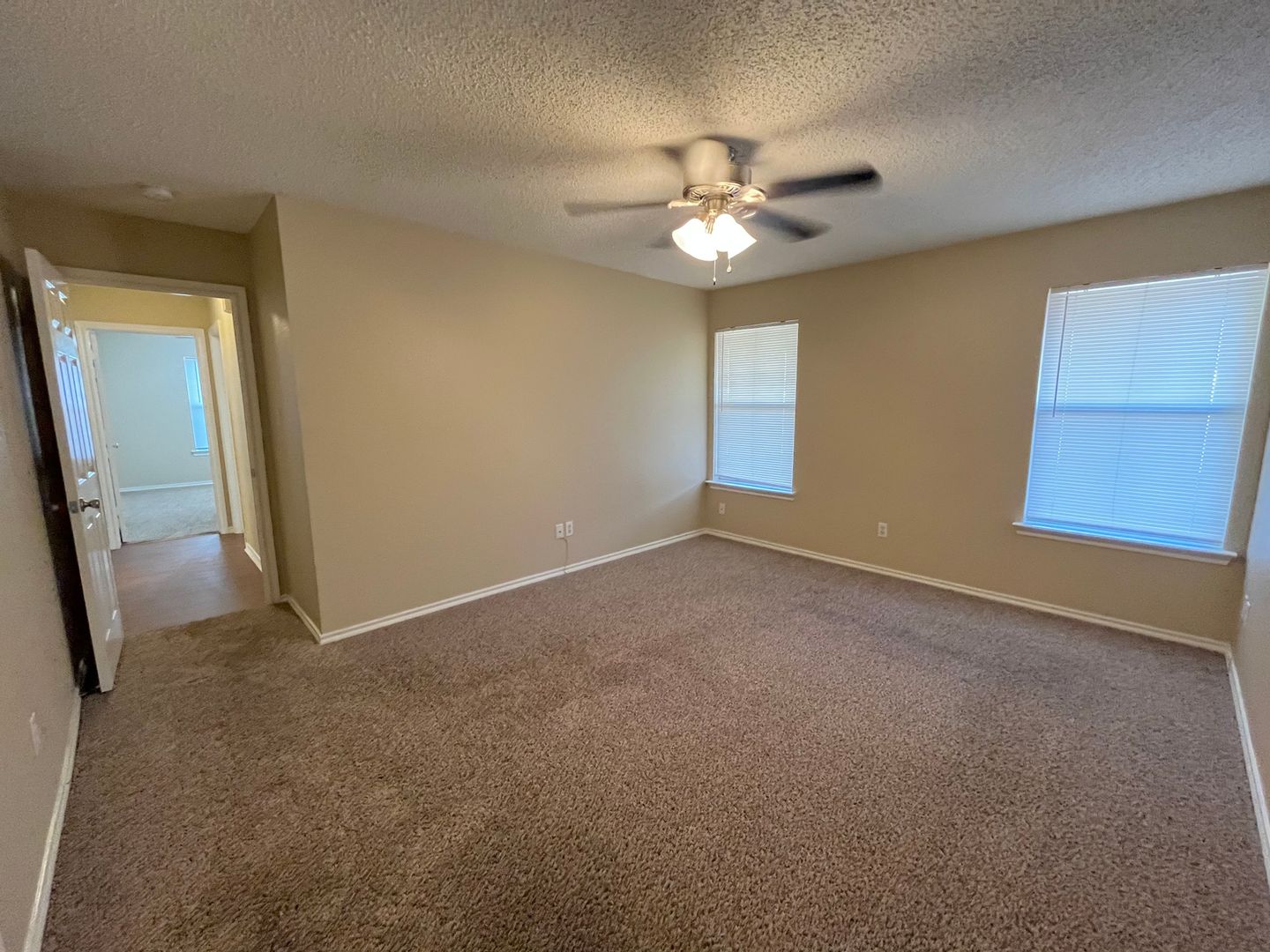 The Primary Suite features a roomy bathroom and walk-in closet. All bedrooms are bright and comfortable, with ceiling fans and plenty of closet space. You'll find durable vinyl flooring throughout most of the home, with fresh carpet in the bedrooms and neutral paint throughout.
